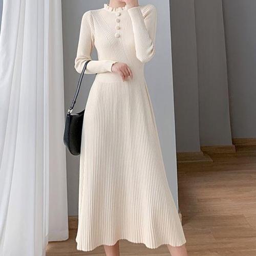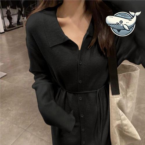 슬림소녀 여성 봄 가을 작은 키 단추 힙업 스커트 긴팔 심플 미니 니트 원피스