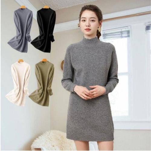 [에이치플러스몰]여성 원피스 베이직 니트 패션 반목 긴팔 겨울 미니