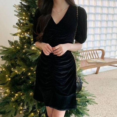 [엄지척]원피스 검정색 미니 봄 가을 모임룩 하객 패션 니트_19806150_667501
