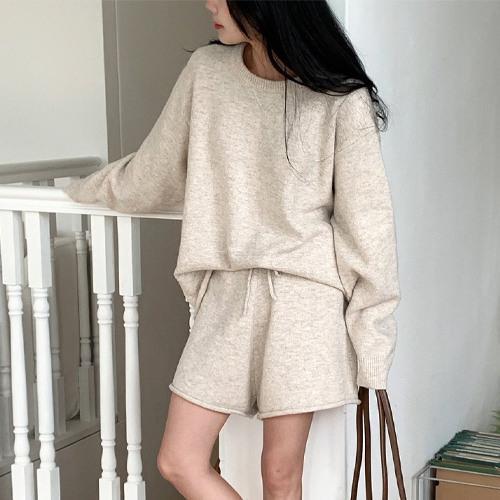 [릴룸]오버핏 라운드넥 울 니트 맨투맨 반바지셋업