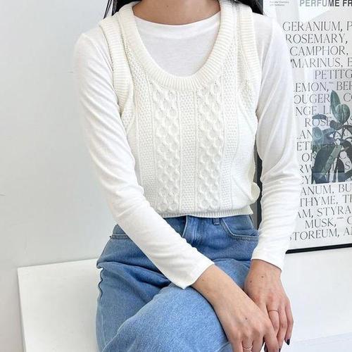 [퍼니걸스]뷔스티에 케이블 꽈배기 크롭 니트 조끼 2160 여성의류
