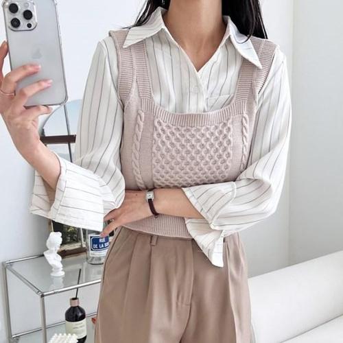 7APRIL 여성용 일체형 뷔스티에 스트라이프 셔츠 니트 세트 5color