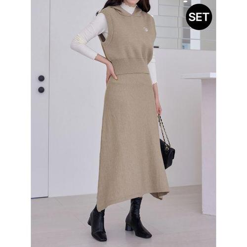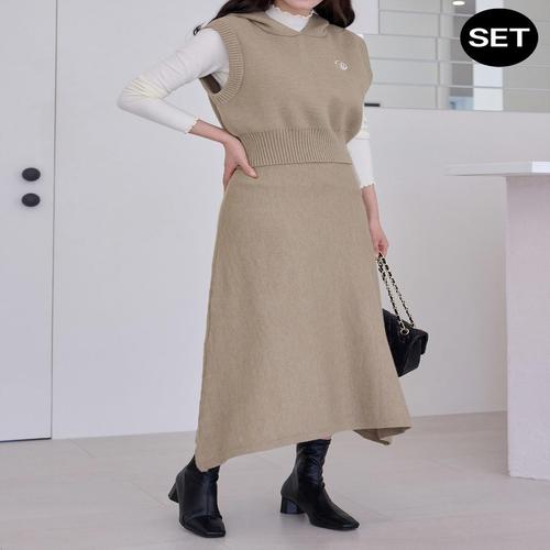 [모리스커밍홈]자수 후드 베스트+니트 스커트 2종 세트_M2511SE071D