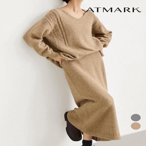 [앳마크]ATMARK 숄더클래식짜임브이넥니트+스커트SET