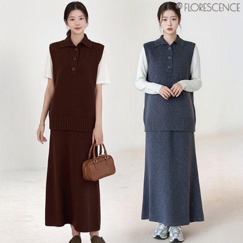 갤러리아_ab.f.z 루즈핏 니트티 H라인 니트 스커트 세트 투피스 롱원피스