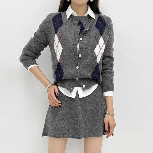 샐리 버튼슬릿 골지 니트 가디건 + 스커트 세트 I4C-CSE013