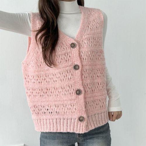 [다잇템]여자 박스핏 V넥 FW 보카시 펀칭 니트조끼