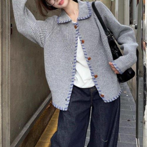 [기타브랜드]스티치 디테일 카라 니트 가디건