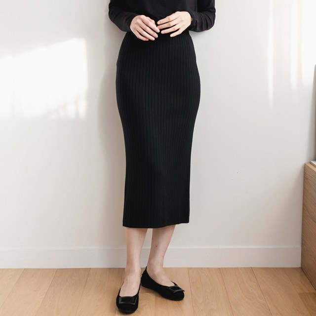 핑크셀럽 H라인 트임 골지 니트 롱 스커트