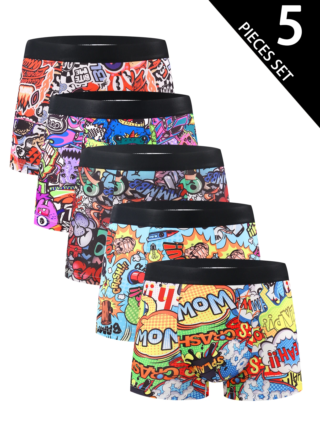 5팩 패셔너블한 남성용 복서 반바지, 편안하고 부드러우며 패셔너블하고 프린트되었으며 캐주얼하고 다재다능한 남성용 속옷