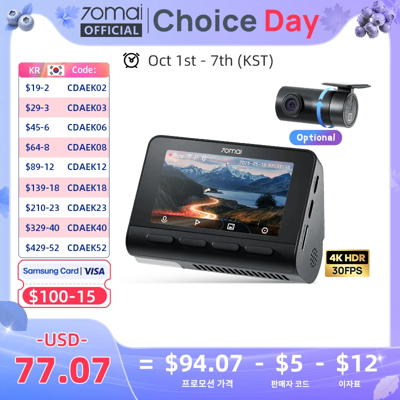 70mai 4K 블랙박스 A800SE 70mai A800S 음성 제어 슈퍼캡타이어 GPS ADAS 차량용 DVR 70mai A800SE UHD Wifi 6 업그레이드 버전