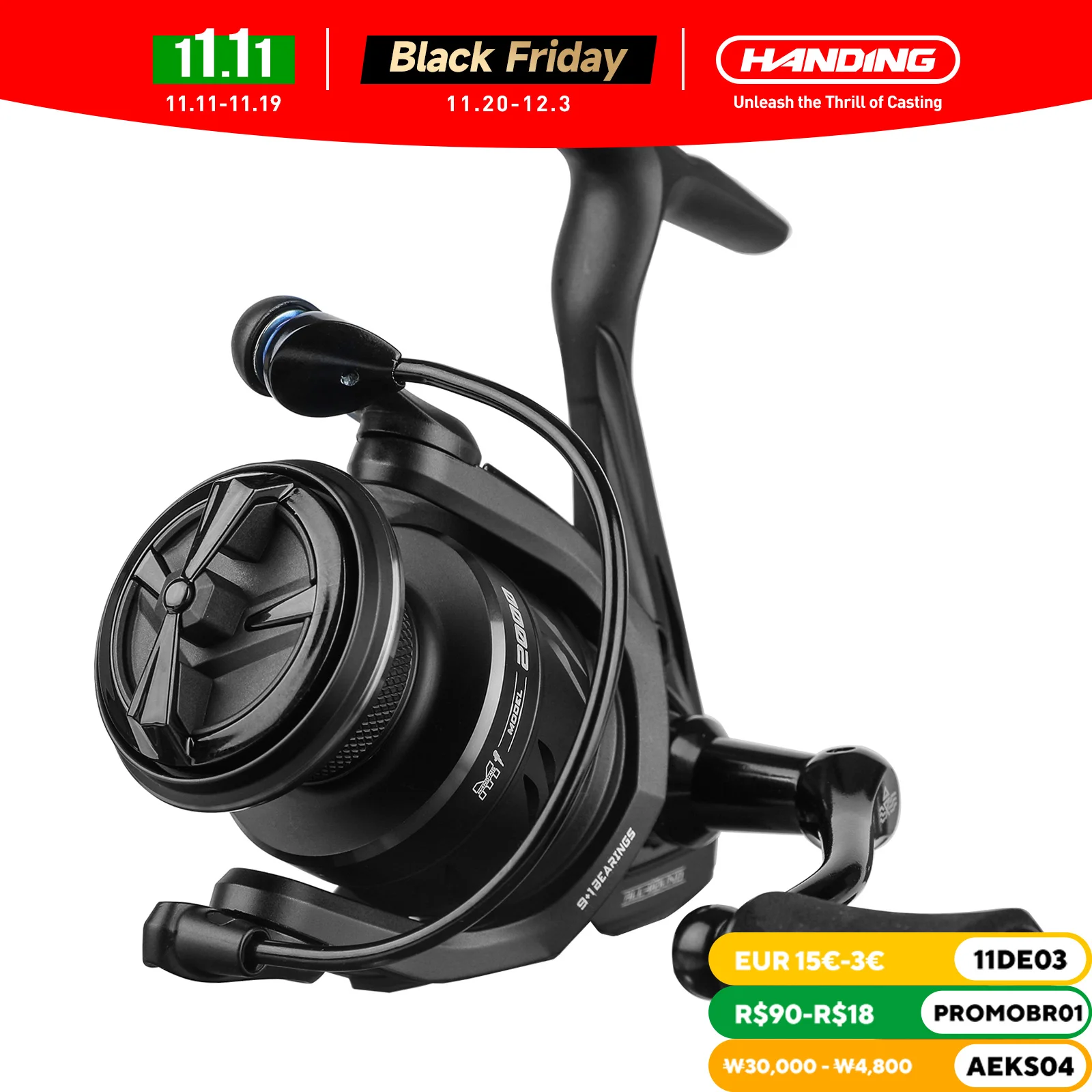 HANDING M1 스피닝 릴 12kg 최대 드래그 흑연 릴, 9 + 1 볼 베어링, 5.2:1 기어비 퍼치 베이스 및 파이크용 낚시 릴