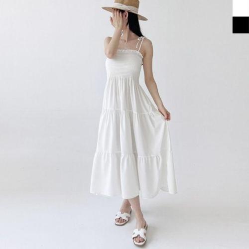 이쁘다요 비치 끈 원피스 나시 튜브탑 롱 드레스 여름 스모크 무지 WFLMMZX
