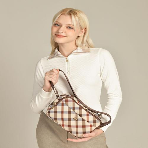 닥스 골프 여성 [ONLINE EXCLUSIVE] 스몰 베이지 하우스 체크 경량 숄더백 (DNGF4F951I2)