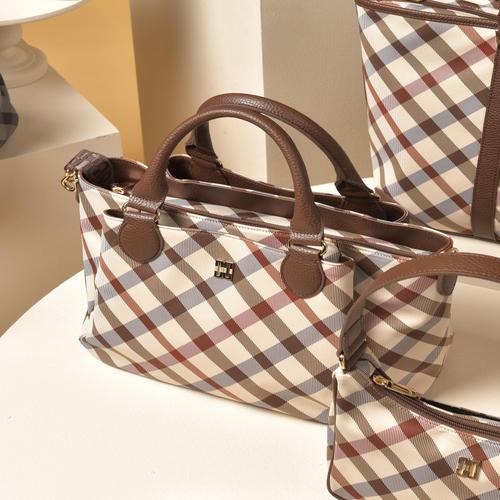 닥스 골프 여성 [ONLINE EXCLUSIVE] 스몰 베이지 하우스 체크 경량 쇼퍼백 (DNGF4F969I2)