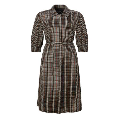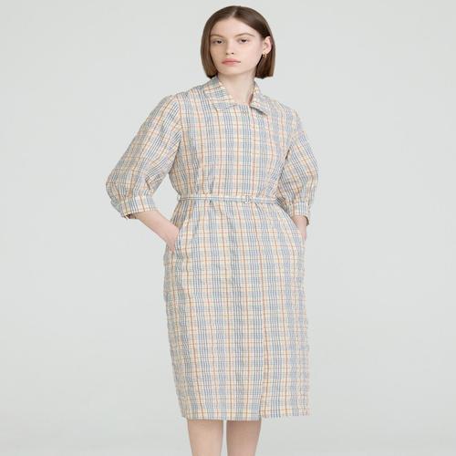 닥스 여성 베이지 체크 벨티드 시어서커 면혼방 7부소매 원피스 (DLDR5BE31I2)