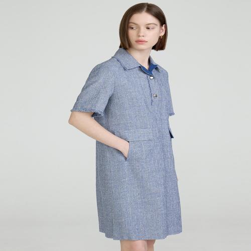 닥스 여성 [트위드]블루 올풀림장식 울혼방 반팔 롱 원피스 (DLDR5B309B2)