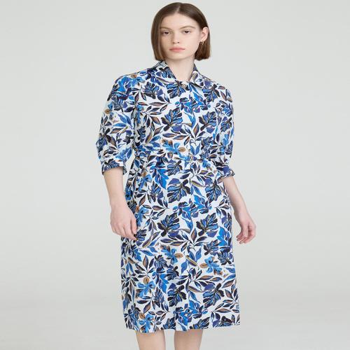 닥스 여성 블루 플라워 패턴 벨티드 시어서커 면혼방 7부소매 원피스 (DLDR5BE31B2)