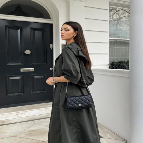 닥스 여성 카키 소매 체크 배색 원피스 겸용 싱글 트렌치 코트 (DLCO5B205K2)