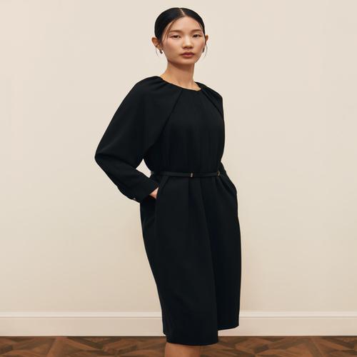 닥스 여성 블랙 셔링 넥 트윌 조직 7부 탈착 벨트 소매 원피스 (DLDR5B203BK)