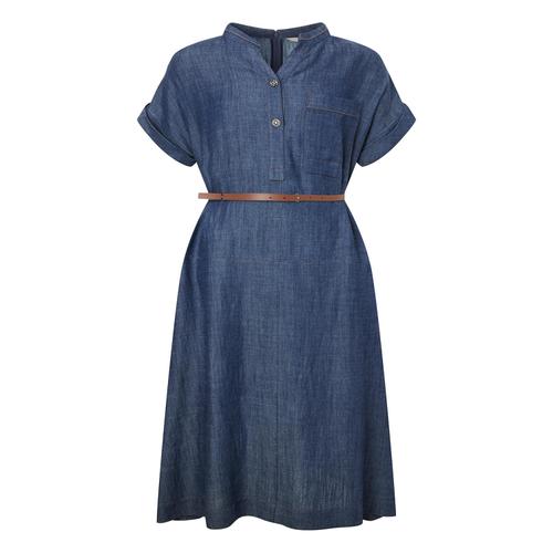 닥스 여성 블루 벨티드 린넨혼방 데님 반소매 롱원피스 (DLDR5B405B3)