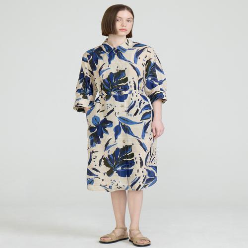 닥스 여성 블루 패턴 벨트 세트 린넨 7부소매 롱 원피스 (DLDR5B403B2)