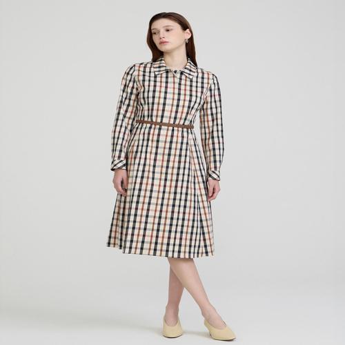 닥스 여성 [벨트 SET] 브라운 하우스 체크 나일론면혼방 긴소매 셔츠형 롱원피스 (DLDR5BE11W3)