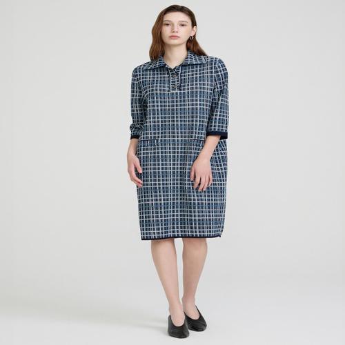 닥스 여성 블루 체크 글리터 면혼방 카라 니트원피스 (DLSW5A105T3)