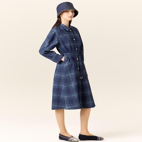 닥스 여성 블루 체크 면혼방 셔츠형원피스 (DLDR5B222B3)