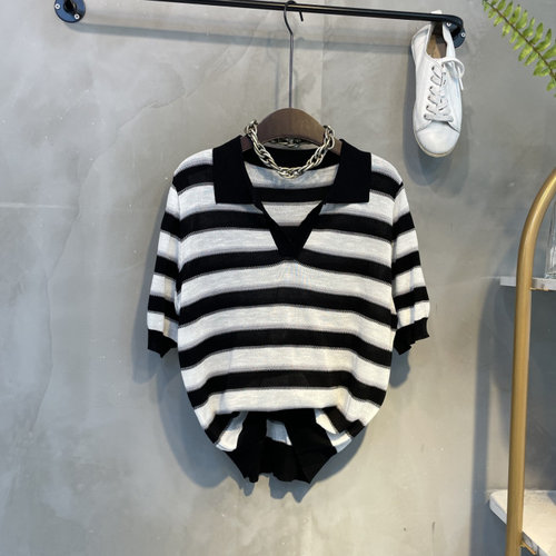 나바바 / NK1230 심플 베이직 단가라 아이스쿨 반팔 니트티