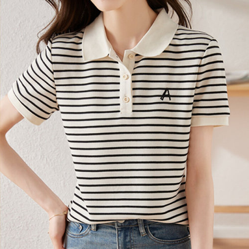 남자 스트라이프 카라티 여름 스트라이프 남성 반팔 티셔츠 옷깃 코튼 트렌드 캐주얼