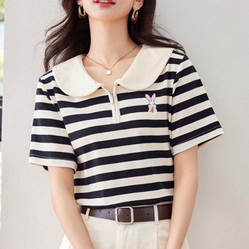 나바바 / NT1731 단가라 토끼 자수 카라 반팔 티셔츠