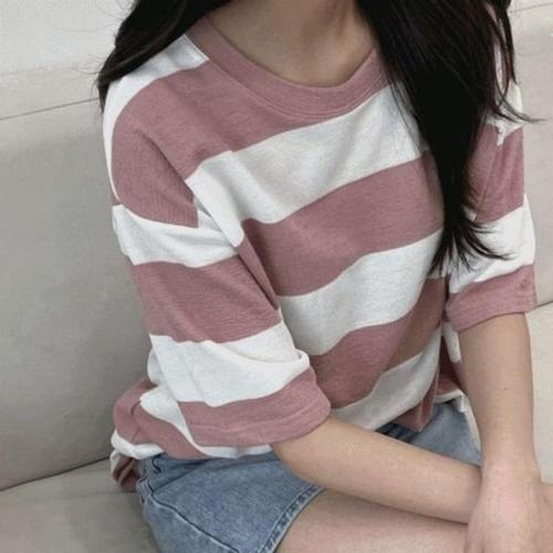 [엄지척]라운드 스트라이프 패턴 반팔티_19610007_667501