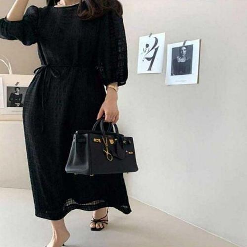 롱 여자원피스 포멀룩 단정한 라운드넥 패션원피 WFLMSJL