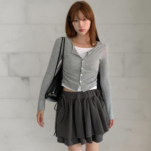 [옷자락] 여성 레이온 스판 레이어드 버튼 골지 긴팔 티셔츠