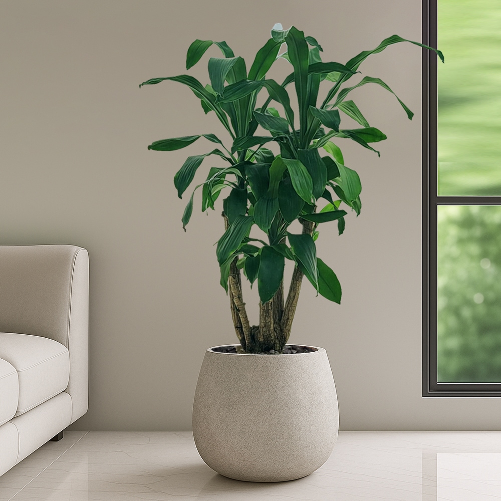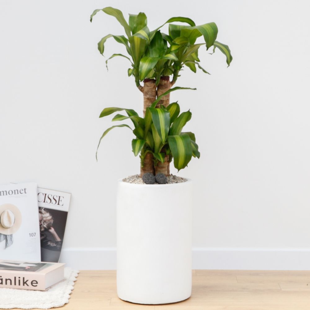 행운목 흰색원형 경량화분 인테리어식물 거실화분 개업화분 승진화분 공기정화식물