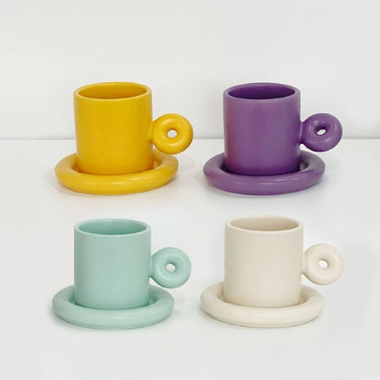 홈카페 동글도넛 미니 머그컵 도자기 커피잔 세트 (4color)