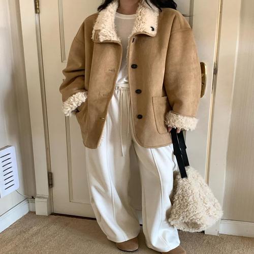 (데일리코트대신/바람샘ZERO) 테디 뽀글 양털 하이넥 스웨이드 무스탕 자켓 jk3034