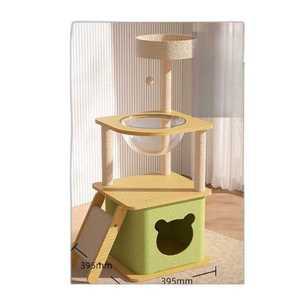 고양이 등반용 원목 우주선 디자인,바닥 설치형 두꺼운 합판 캣 하우스,대형 캣 타워 & 캣 스크래처 포스트,고양이 워크웨이,가정용 다층 캣 점프대,뛰어난 안정성,운동 부족 해결, 향상된 모델, 1개