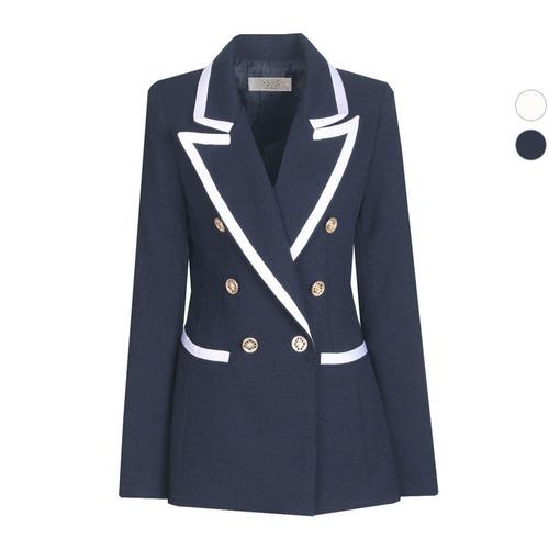 여성 배색 트리밍 더블버튼 봄가을 정장 자켓