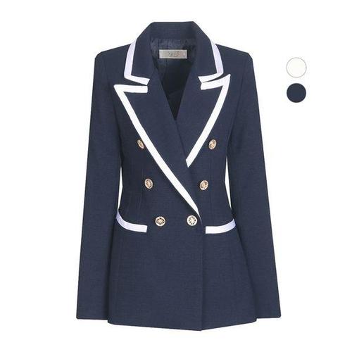 [비비드시크릿가너]여성 배색 트리밍 더블버튼 봄가을 정장 자켓