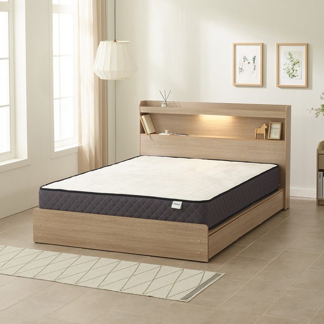 장인가구 장인가구 메이비 LED 직선헤드 수납 침대프레임 더블 D +포켓폼매트 (높이230)