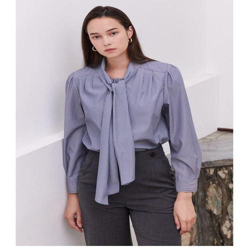 [더아이잗]타이넥 스트라이프 블라우스 IN9A0BL04-JJ