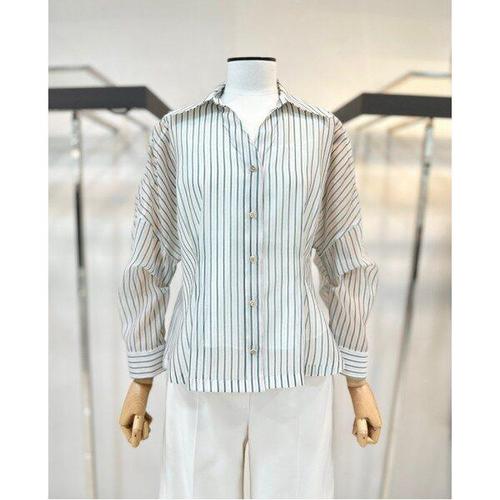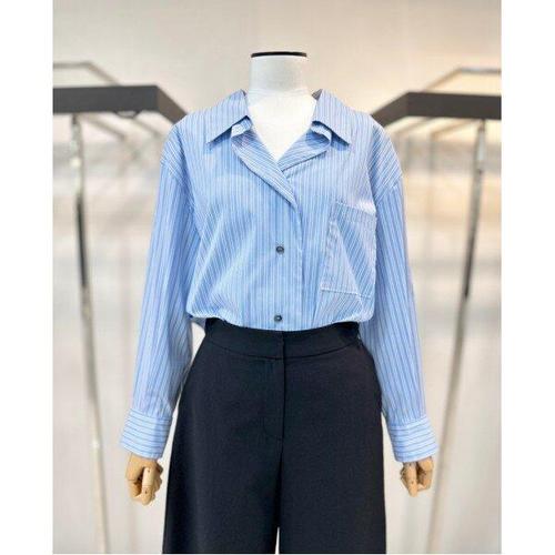 [더아이잗컬렉션]스트라이프 자수 포켓 블라우스 (CR5A0BL761)