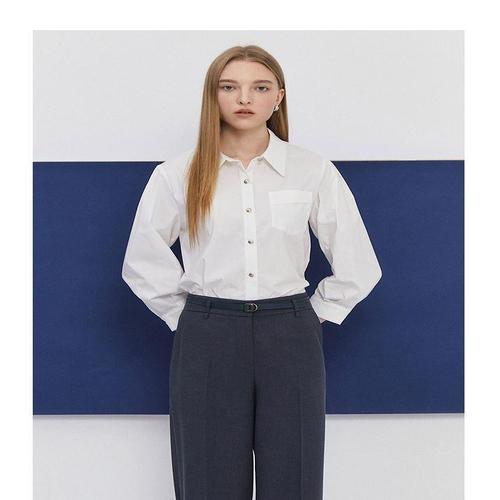 [더아이잗]뉴욕 볼륨 슬리브 코튼 블라우스 IN9A0BL03