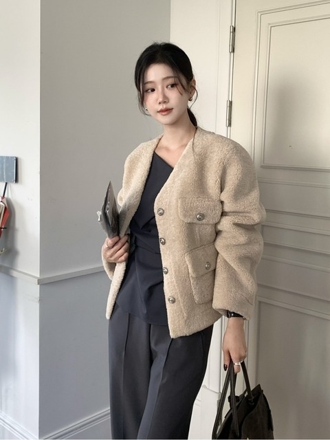 [더아이잗] (더아이잗) 페이크 퍼 포켓 브이넥 무스탕 재킷 IRVP3JK511