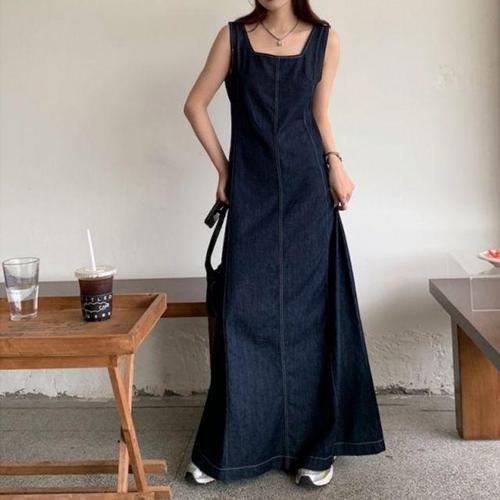 여름 데님 A라인 민소매 나시 롱 원피스 바캉스 청원피스 빅사이즈