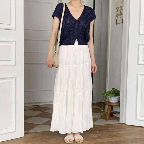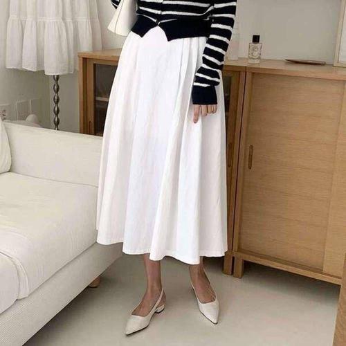 POMTOR 여름 데일리 빈티지 캐주얼 롱 청 치마 데님 스커트