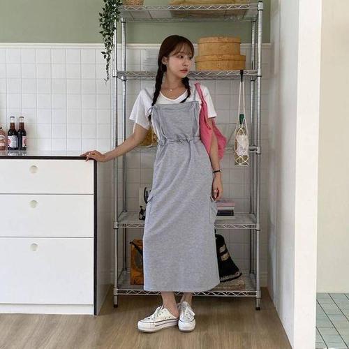 캐주얼 데님 멜빵 롱 원피스 루즈핏 편한