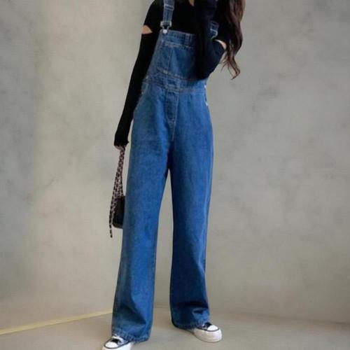 와이드핏 여성 점프수트 청멜빵바지 데님통바지